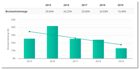 De gemiddelde brutowinstmarge over de laatste vijf jaren vertoont een sterk dalende tendens.